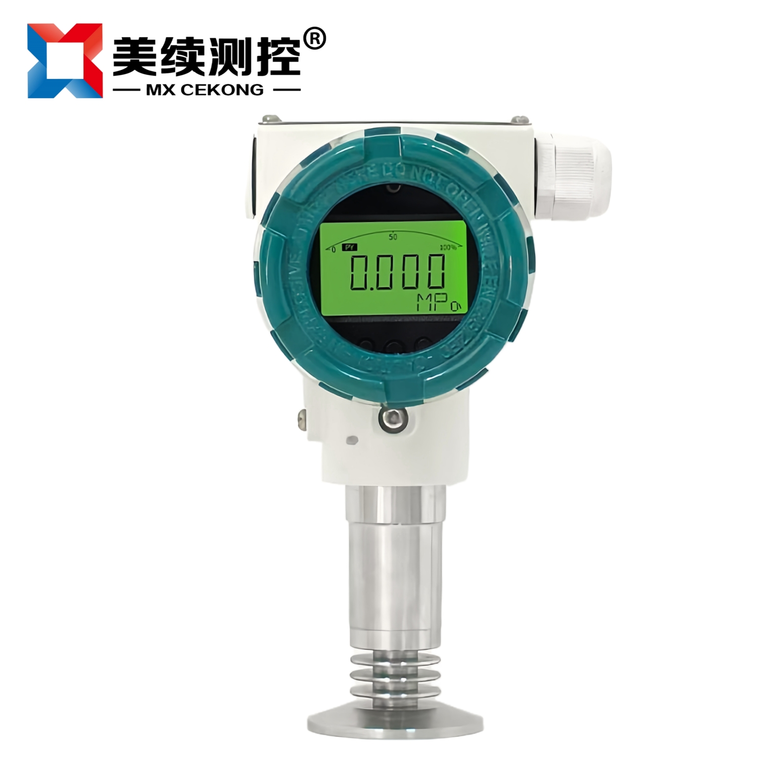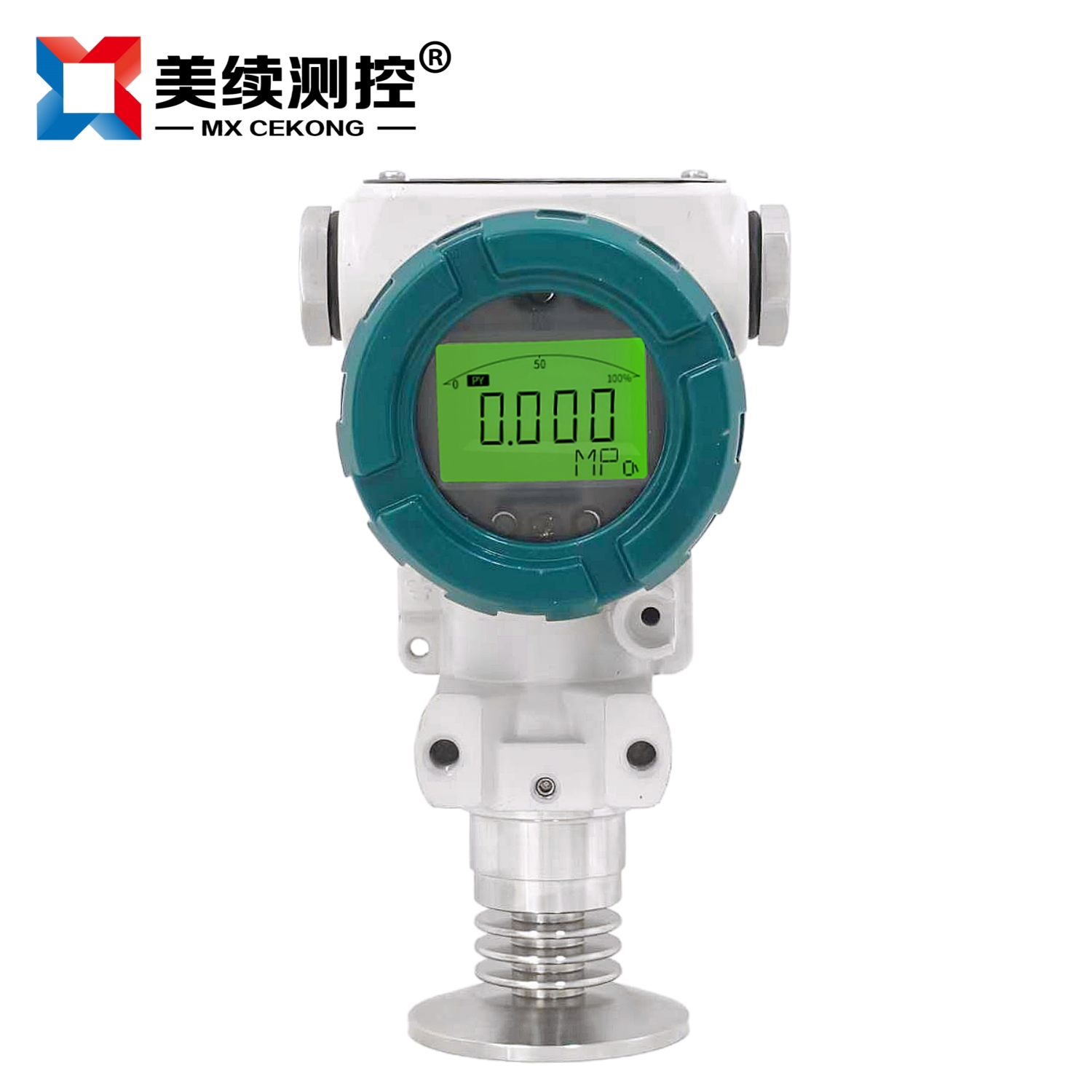 MX-YL-120-03系列产品:该系列产品采用我司自主研发生产的高性能扩散硅芯体封装。外壳为特殊防爆壳体,可以带内置电池供电和外置24VDC两线制供电。采用压阻式传感器芯体,壳体为不锈钢外壳,外壳防护等级为IP65以上。应用于食品、制药等自动化领域的流体压力测量与控制。可带LCD显示,耐腐蚀,宽范围温度补偿、良好的线性、有反极性保护、瞬间过电流、过电压和抗干扰保护措施,拥有良好的防护等级。在MX-YL-120-02数显压力变送器上面进行了改进和优化,因为其出色的性能,在卫生型行业广泛使用。