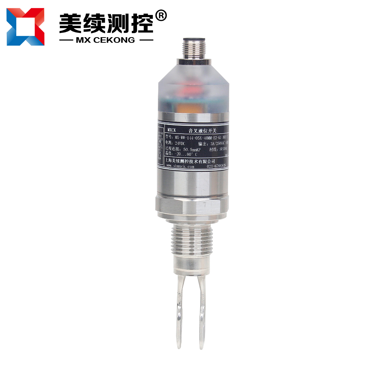 小音叉料位开关MX-WW-144-05X是专用对于空间有限的容器、槽罐和各种管道的液位,料位测量,控制的。小音叉物位开关通过震动原理来测量物位高度,音叉由晶体激励产生振动,当音叉被液体或固体浸没时振动频率发生变化,通过安装在音叉基座上的一对压电晶体使音叉在一定共振频率下振动。当音叉与被测介质相接触时,音叉的频率和振幅将改变,这些变化由智能电路来进行检测,处理并将之转换为一个开关信号。音叉式物位开关又被称作“电气浮子”,凡使用浮球开关和由于结构、湍流、搅动、气泡、振动等原因不能使用浮球开关的场合均可使用“电气浮子”。由于该物位开关无活动部件,因此无需维护和调整,是浮球开关的升级换代产品,广泛应用于自来水、矿泉水、纸浆、胶水、染料、泥浆、碱溶液、酸溶液、啤酒、饮料、石化、轻工、食品、水处理、可产生气体的液体、流动性好的固体粉料或颗粒。对物位进行上、下限报警及控制。